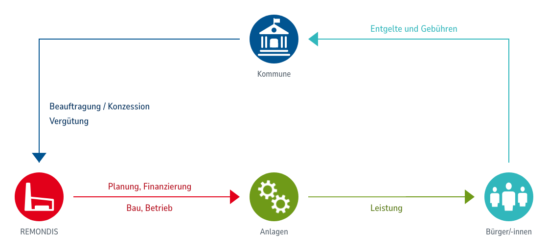 Mit REMONDIS als Betreiber profitiert die Kommune von Investitions- und Planungssicherheit über die gesamte Laufzeit der ÖPP hinweg. Die liegt in der Regel zwischen 15 bis 30 Jahren. Da wir bei dieser Form der ÖPP die Verantwortung für den reibungslosen Betrieb der Infrastruktur oder Dienstleistungen tragen, sind wir bestrebt, eine hohe Qualität und Effizienz sicherzustellen. Dies wird durch Qualitätsziele gewährleistet, die im Kooperationsvertrag festgeschrieben sind. Hierin wird REMONDIS als privater Partner dazu verpflichtet, bestimmte Standards einzuhalten und regelmäßige Leistungskontrollen zu ermöglichen. So schaffen wir gemeinsam hochwertige und nachhaltige Lösungen für Bürgerinnen und Bürger.